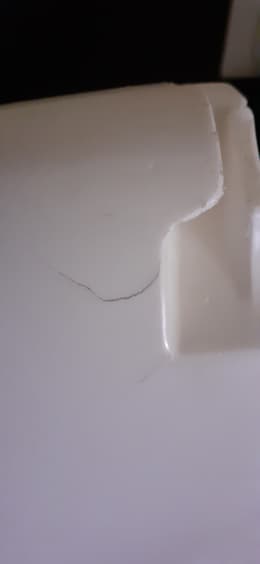 Se toimii tällä hetkellä oikein. Varoma-toiminnon kytkentävaikeudet - Noin 3 cm:n halkeama vasemmassa yläkuoressa lähellä kannen sulkua. Mielestäni tätä ei voi kuvailla "täydellisessä kunnossa" olevaksi.